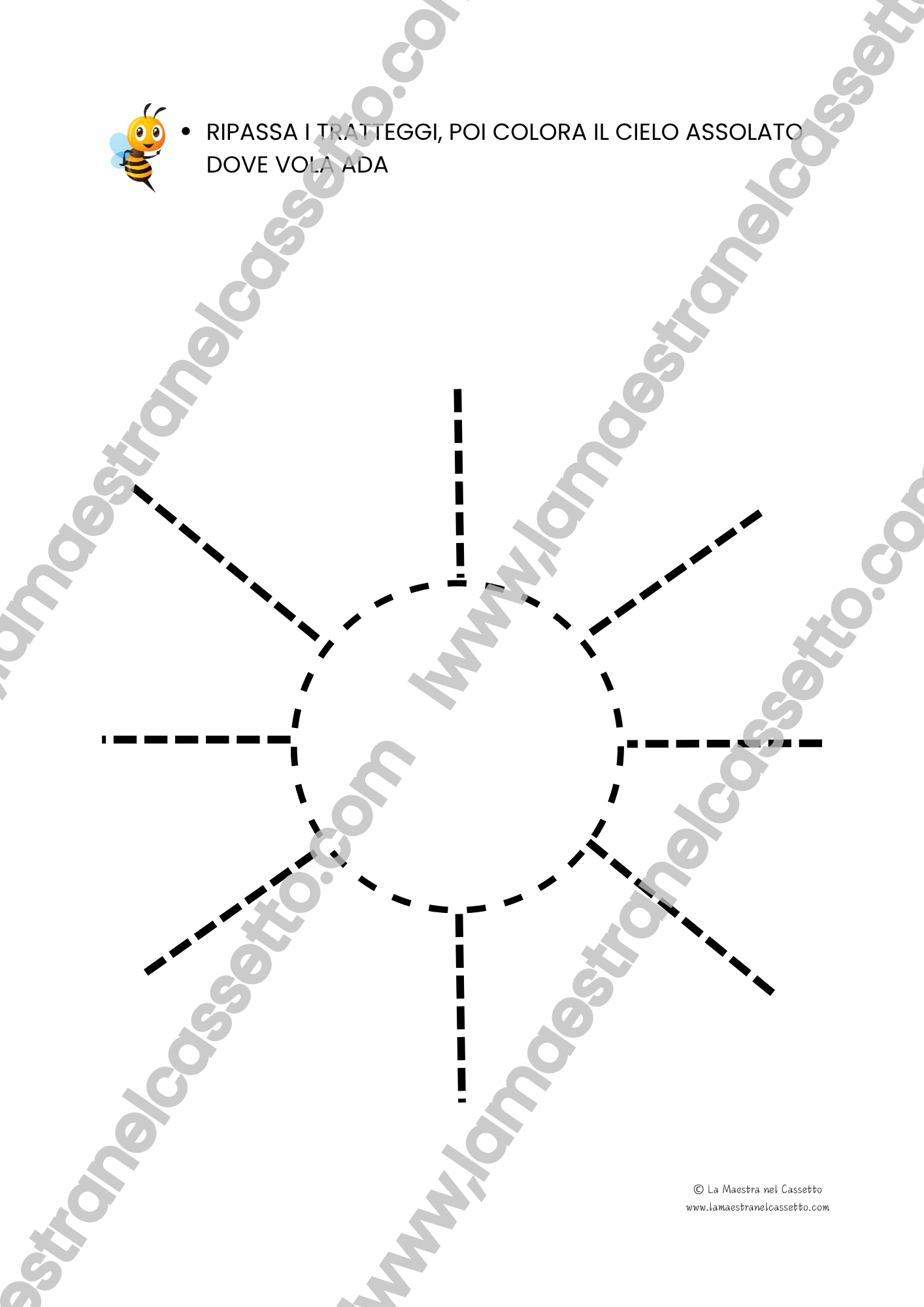 - disegnare e colorare il giardino, dividendo lo spazio in tre fasce (cielo, prato, acqua);